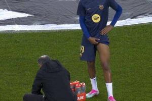 亚马尔热身中手按大腿提前退场,疑似该区域出现不适,离场时神情懊恼。